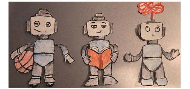 As AI becomes omnipresent, it can be tricky to say exactly what “doing your own work” means or why you might prefer to do it yourself. Laurie Hornik shares the day she led her 7th graders in thinking about what they’d be willing to turn over to AI. Cue the robot basketball players.